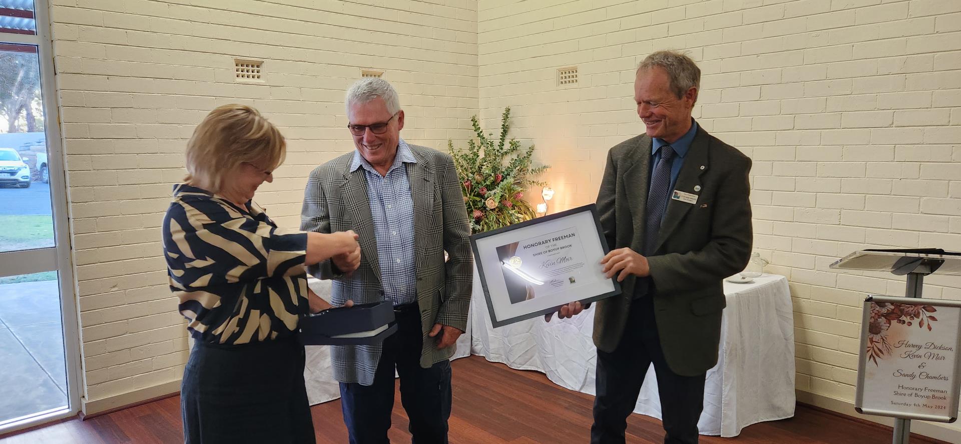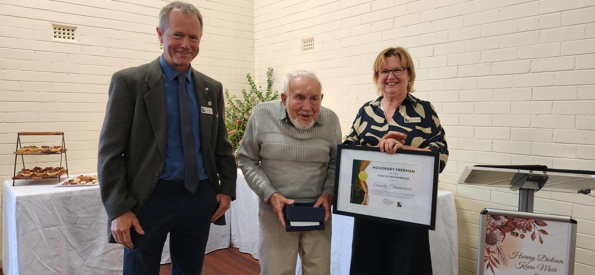 You are an integral part of Boyup Brooks history, it is an honour to bestow you with the title of Honorary Freeman of Boyup Brook. Congratulations.