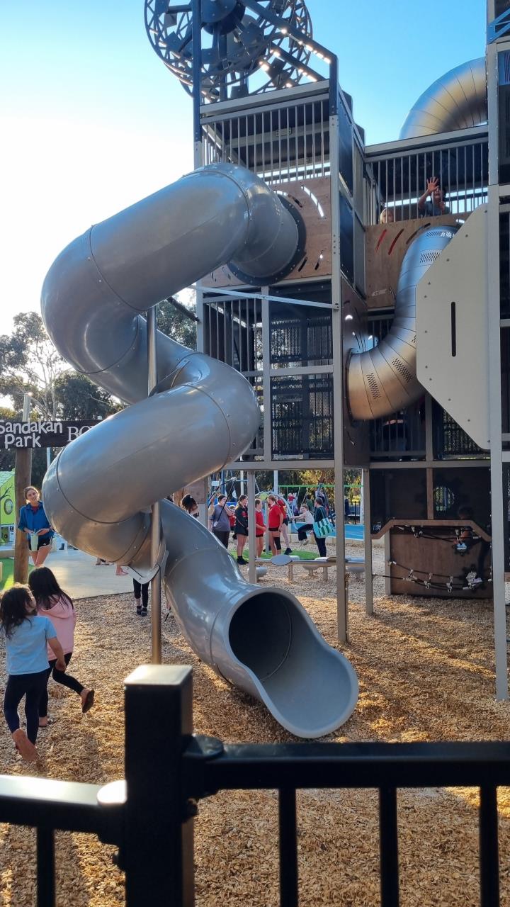 This fully fenced wonderland is packed with excitement—featuring a towering 8-metre high play tower with three thrilling slides, a dedicated toddler zone, musical play areas, trampolines, and a huge variety of swings and equipment designed for everyone, including an abilities swing, wheelspin, and wayfinding signage.