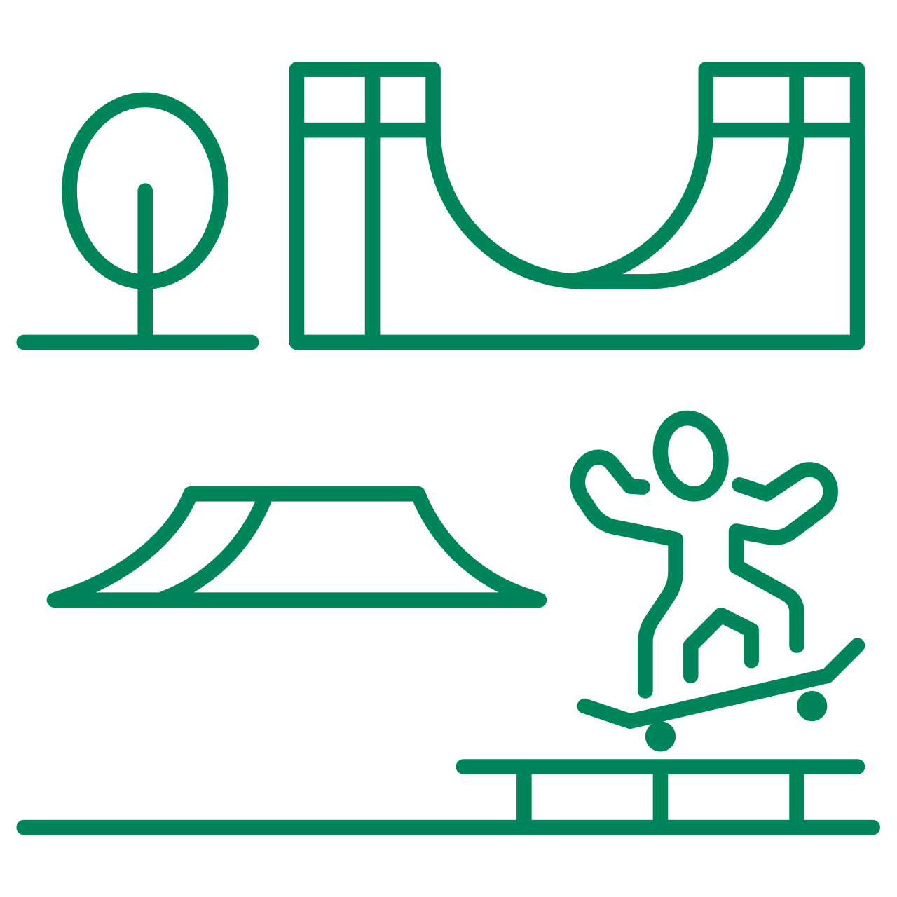 Just beyond the playground, the adventure continues with a dual cableway (zip line)—one specially fitted with an abilities seat, a climbing boulder cluster, outdoor table tennis, and a picnic area complete with an accessible BBQ and shaded seating. A Ninja Warrior course, outdoor exercise equipment, and a fenced dog park complete the area, making this an action-packed hub for locals and visitors alike.