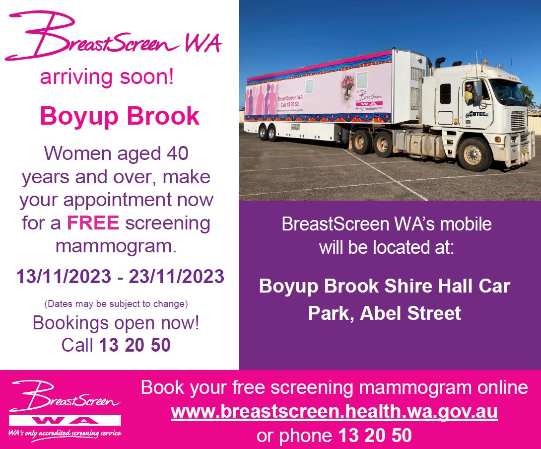 Search BreastScreen WA to book Online or phone 13 20 50 to make an appointment.