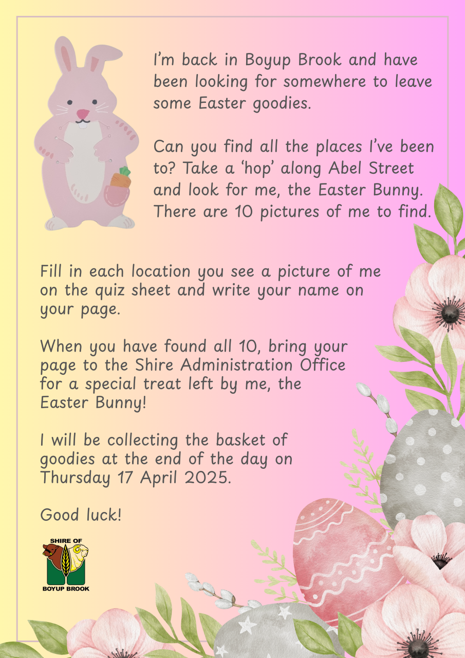 Click HERE to download a quiz sheet or pick one up from the Shire Administration Office.