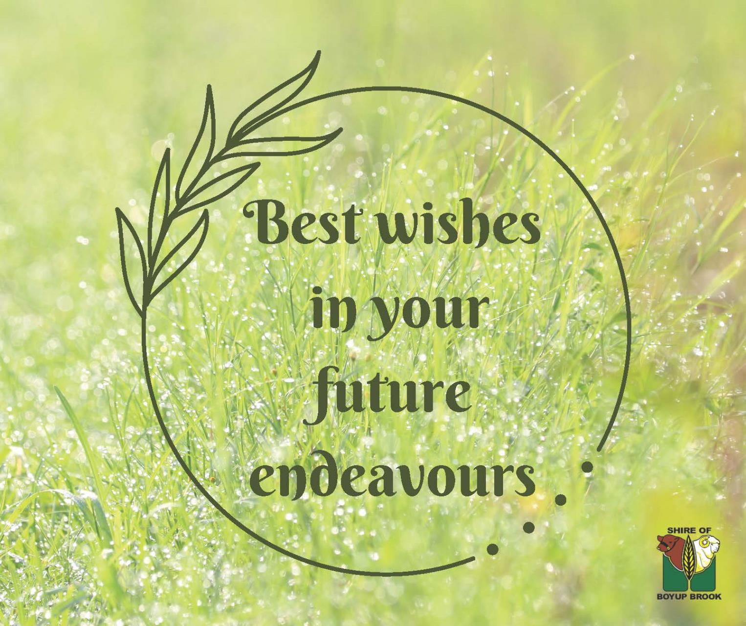 Dale has also been instrumental in bringing forward Scheme Amendments that will help set Boyup Brook up for a sustainable future. We wish Dale well in his future endeavours.