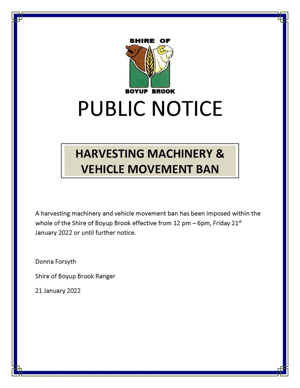 Harvest, Machinery and Vehicle Movement Ban Today 21 January 2022