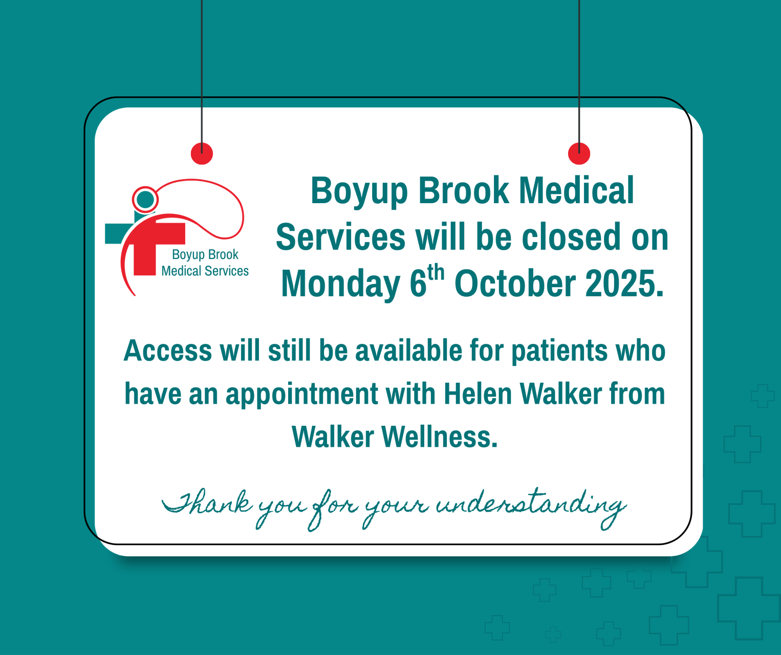 Medical Centre closed 6 October 2025