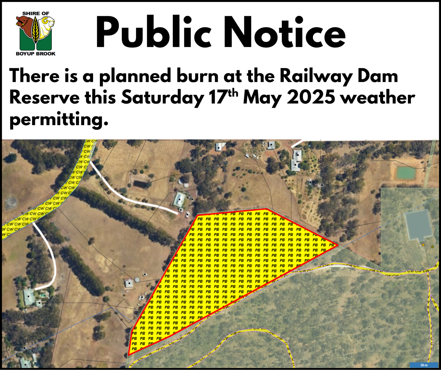 There is a planned burn at the Railway Dam Reserve this Saturday 17th May 2025 weather permitting.