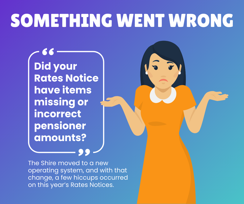 These errors are being worked on with the software company, with most already fixed. If you would like to have your rates notice re-issued, please contact the Shire by email [email protected] or phone 9765 1200.