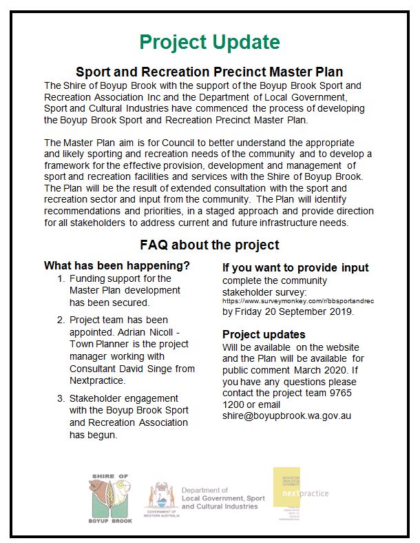 Community Stakeholder survey closes Friday 20 September: https://www.surveymonkey.com/r/bbsportandrec